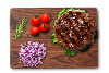 Gegrilltes Steak mit Zwiebeln und Beilagen.
