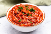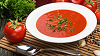 Frische, cremige Tomatensuppe mit Gewürzen.