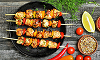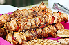 Gegrillte Spieße mit Fleisch, Speck und Steak.