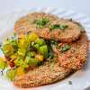 Panierte Gemüse mit Schmandsalat und Toast.