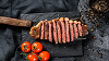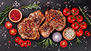 Schweinefilet, Rumpsteak und Speck mit Beilagen.