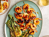 Garnelen mit Knoblauchsauce, Schmandsalat und Toast.