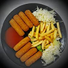Fischstäbchen mit Pommes für Kinder.